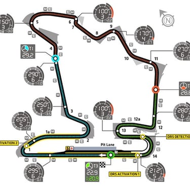 No GP da Itália (Monza), a principal zona de DRS fica na reta principal, ideal para atacar na freada da primeira chicane.